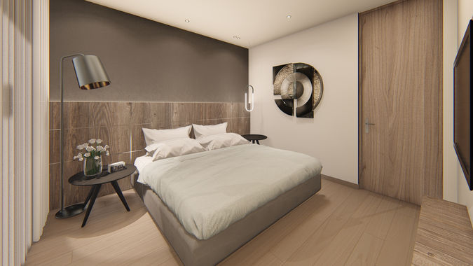 To enhance privacy while maintaining openness, we integrated large floor-to-ceiling windows with recessed frames, allowing natural light without compromising intimacy. The façade blends textured concrete, warm wood, and exposed brick, creating a refined yet welcoming aesthetic.