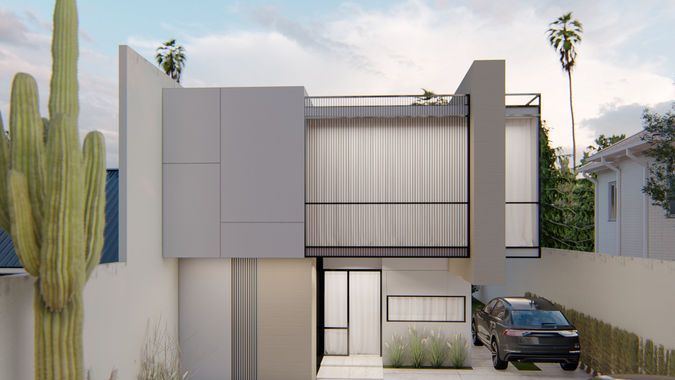 This residence was designed for a young family of three, prioritizing a contemporary aesthetic with clean lines and geometric interplay. The architectural concept is based on the superposition of cubic volumes, creating a dynamic and visually striking composition.
