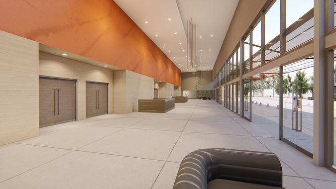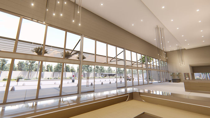 Located in a setting that integrates nature and urban life, this convention center is designed as a versatile and modern space capable of hosting large-scale events. The architectural concept emphasizes openness and transparency, featuring a glass façade that visually connects the interior with the exterior.